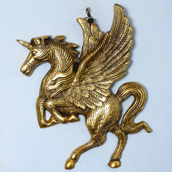 Golden Metal Antique Finish Flying Angel Horse Decorative Showpiece