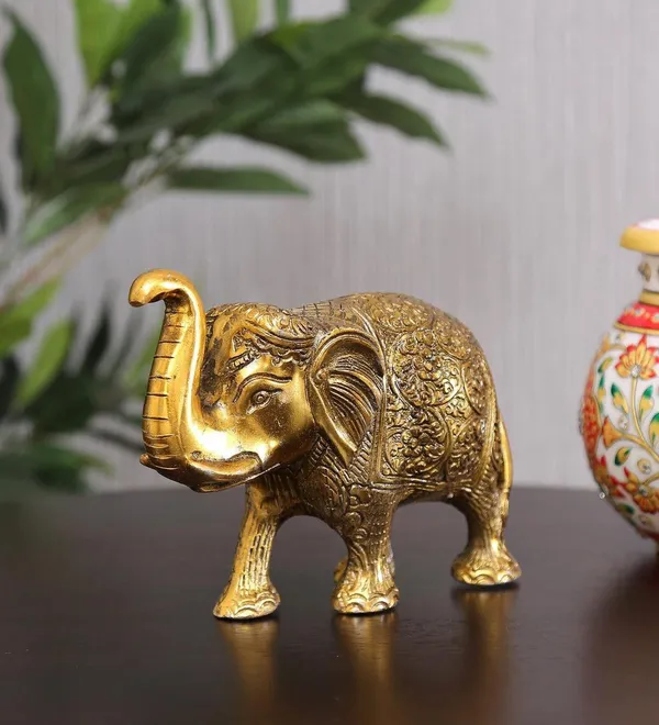Golden Metal Elephant For Home And Office Decorative Showpiece