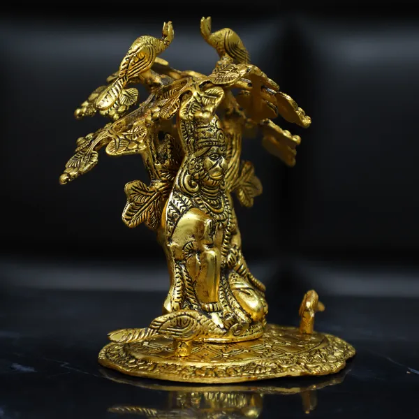 Golden Metal Hanuman Idol Bajrangbali Statue Sitting Under Tree Decorative ..More