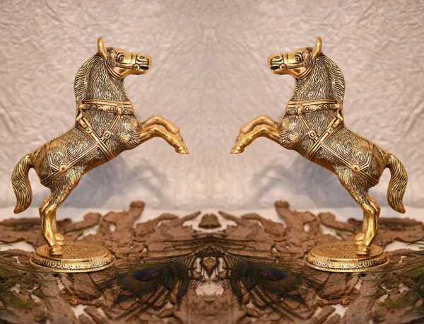 Golden Metal Horse Statue Set Of 2 For Wealth, Income, Shining And Bright F..More