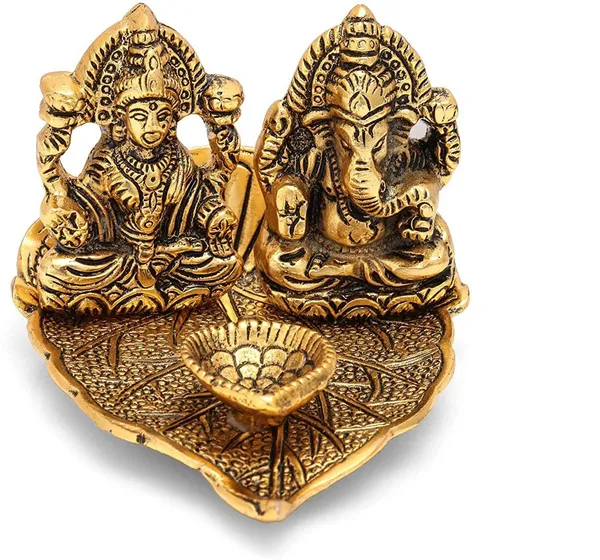 Golden Metal Laxmi Ganesh Diya Idol With Oil Lamp Deepak Metal Lakshmi Gane..More