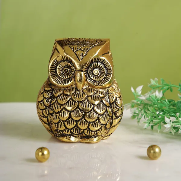 Golden Metal Owl For Good Luck Vastu Item For Home And Office Decorative Sh..More
