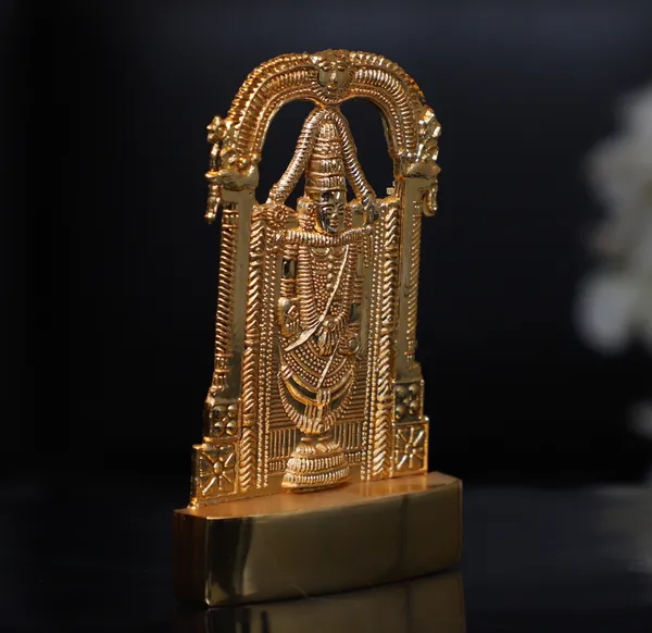 Golden Metal Tirupati Balaji, Sri Venkateswara Idol For Home And Car Dashbo..More