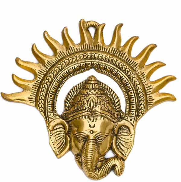 Golden Metal Wall Hanging Kiran/Suraj Ganesh Decorative Showpiece